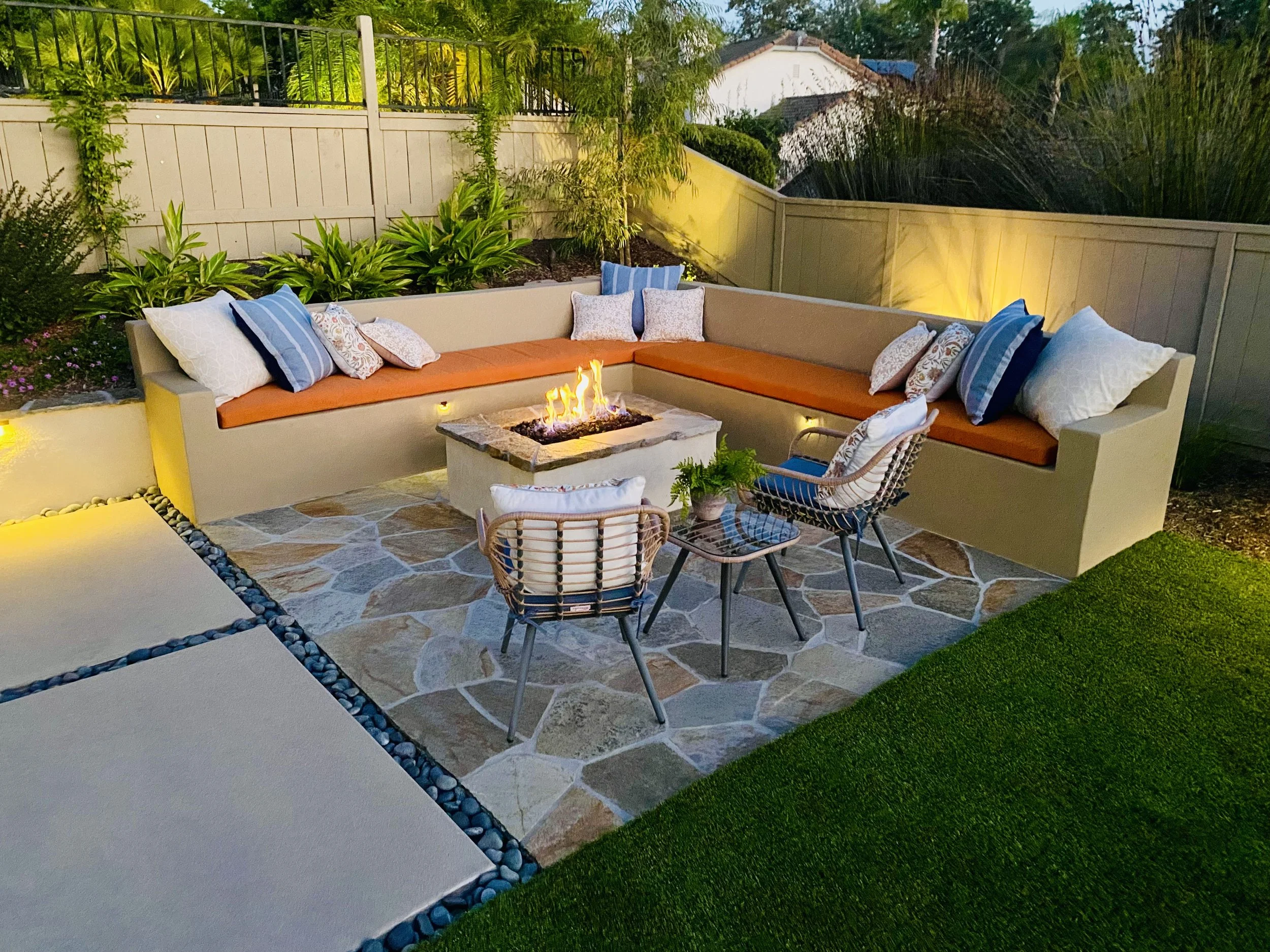 Encinitas RetreatThis backyard was old and tired. The design created cozy areas for entertaining and relaxing. Sounds of water flowing, flickering of fire, smells from the kitchen; The space was transformed.